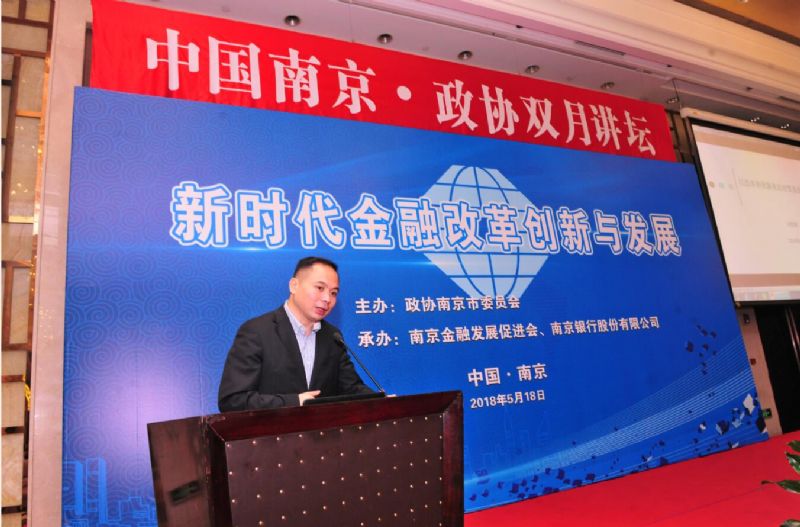 2018年5月18日,由南京市政协主办,南京金融发展促进会和南京银行股份有限公司承办的“新时代金融改革、创新与发展”论坛暨市政协第二次双月讲坛在宁举行。本次论坛邀请了中国人民银行原行长助理张晓慧、社科院重点金融实验室主任刘煜辉分别作《高质量金融发展与货币金融政策》和《中美贸易战对经济和金融的冲击及应对》的演讲,为南京金融创新和改革建言献策。市政协副主席吴卫国主持论坛,副市长冉华出席论坛并致辞,市政协副主席胡勤刚、杨平,秘书长彭振宁,省市相关部门、金融机构代表及市政协委员500余人出席了论坛。