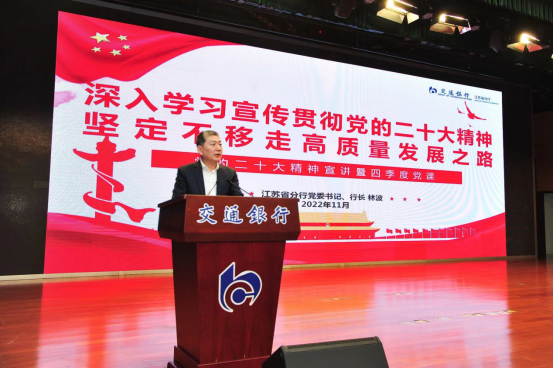 林波:一直以来,分行党委始终坚持党的全面领导,坚持以习近平新时代中国特色社会主义思想为指导,深刻认识江苏作为“全面从严治党”首提地的重大政治责任,坚定不移全面从严治党,自觉贯彻落实党中央决策部署以及总行党委工作安排,不断强化党建引领高质量发展。