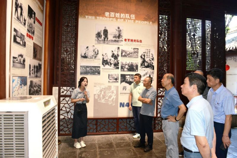 活动首先抵达新四军驻高淳办事处旧址。1938年8月,为开通茅山抗日根据地和皖南新四军军部的通道,新四军第一支队政治部决定组成民运工作组,在高淳县城开展地方工作,对外称新四军驻高淳办事处。87载岁月更迭,这里仍完好保存着抗日战争时期新四军工作、生活的实物与场景。在讲解员的引导下,大家依次参观历史展厅、办公生活旧址及文物陈列柜,在泛黄的文件、陈旧的物品与珍贵的历史照片中,重温新四军在高淳地区宣传发动群众、开展统战工作、建立抗日地方组织、开辟抗日根据地的峥嵘岁月。随着讲解员的深情讲述,大家仿佛穿越至战火纷飞的年代,深刻感悟抗战胜利的来之不易,纷纷驻足在史料前久久凝视,轻声交流间,满是对抗日先烈的崇敬之情。